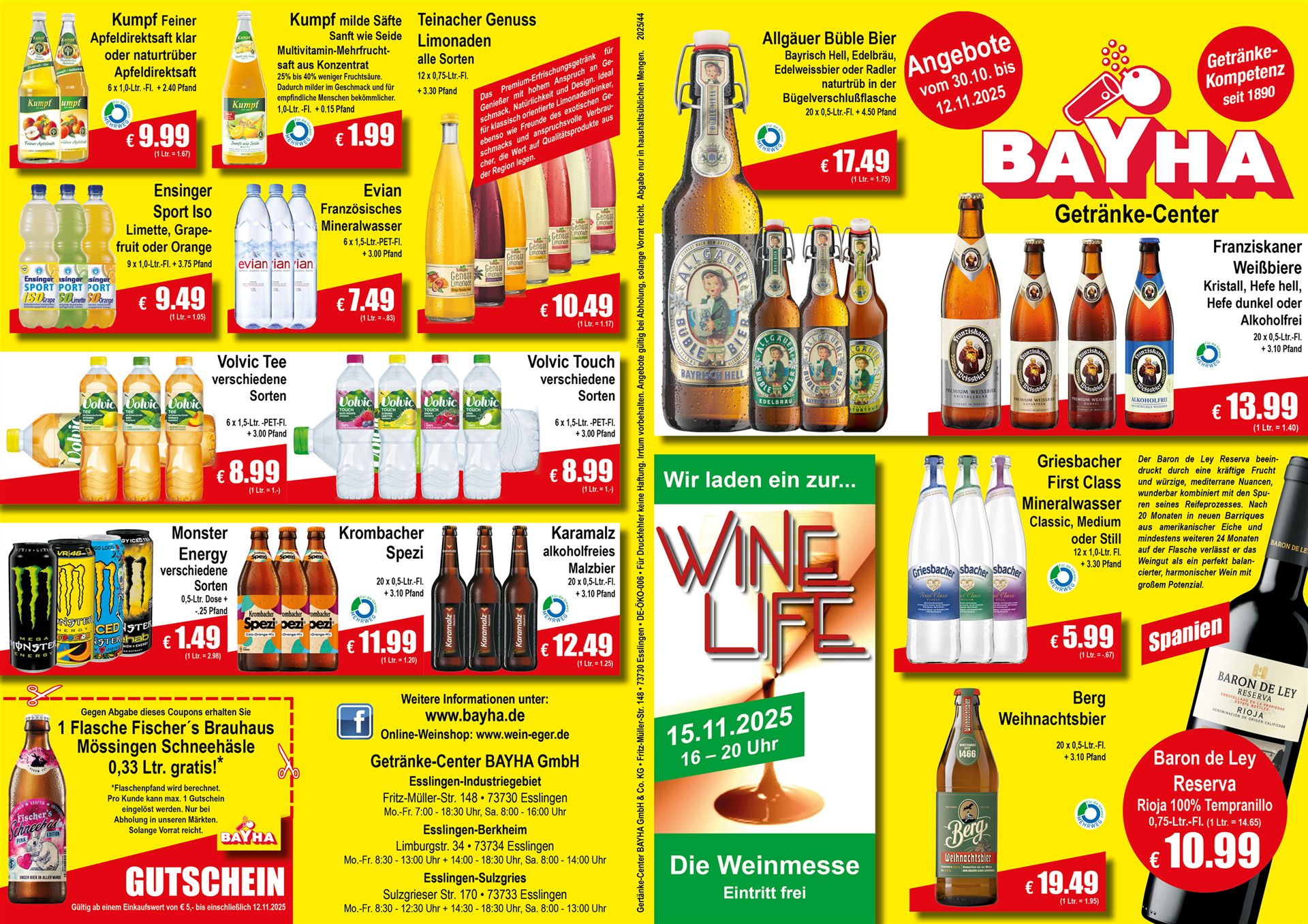 Getränke-Center BAYHA GmbH & Co. KG | Fritz-Müller-Str. 148 | 73730 Esslingen | Telefon: 0711 93920710 | Fax: 0711 93920722 | E-Mail info@bayha.de | Öffnungszeiten