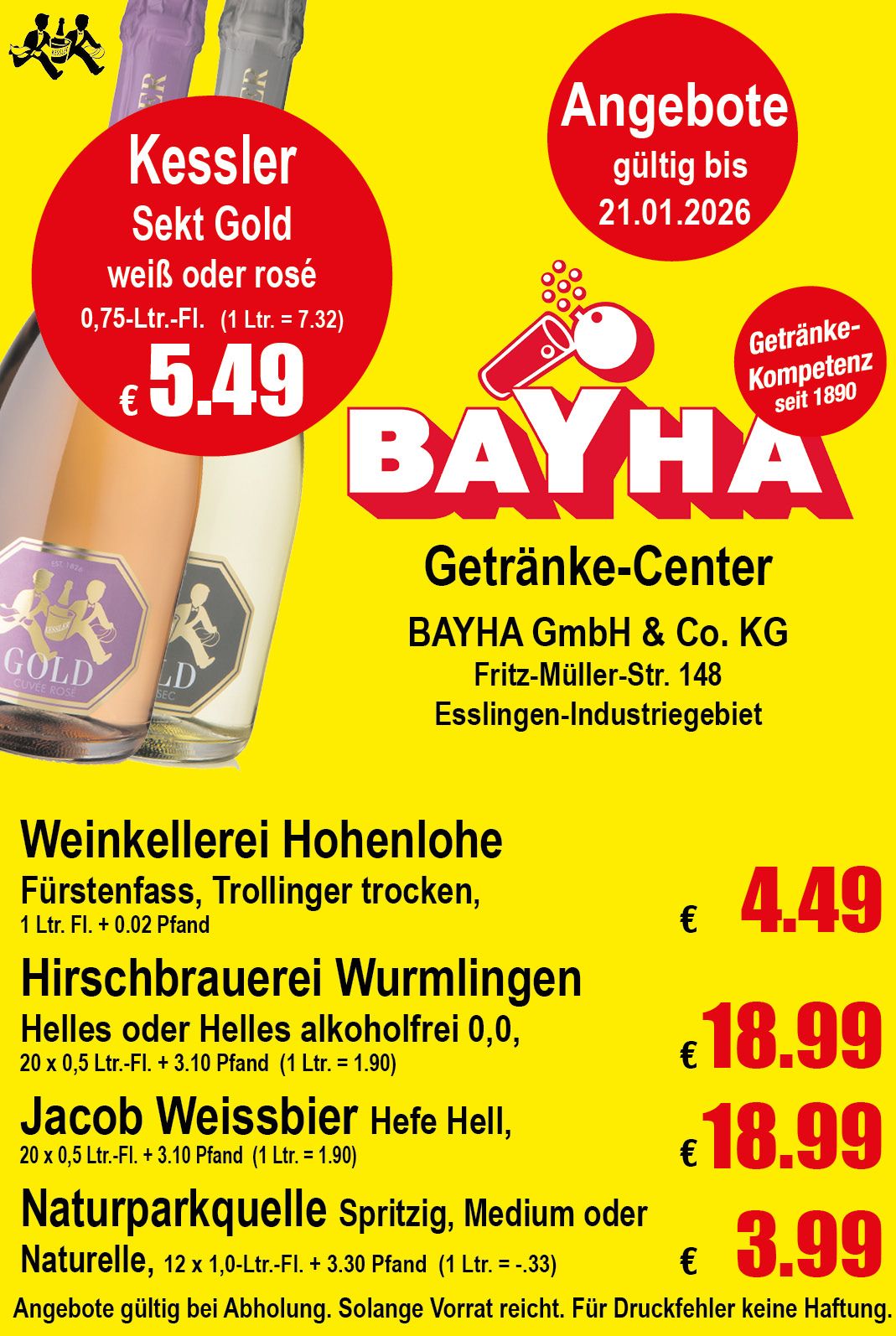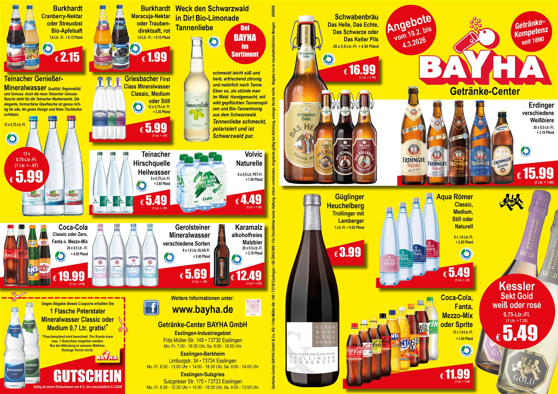 Getränke-Center BAYHA GmbH & Co. KG | Fritz-Müller-Str. 148 | 73730 Esslingen | Telefon: 0711 93920710 | Fax: 0711 93920722 | E-Mail info@bayha.de | Öffnungszeiten
